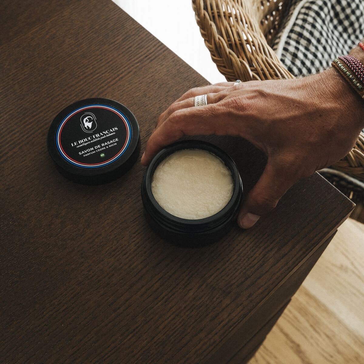 Découvrez le savon de rasage Le Bouc Français, spécialement pensé pour répondre aux besoins spécifiques de la peau des hommes.